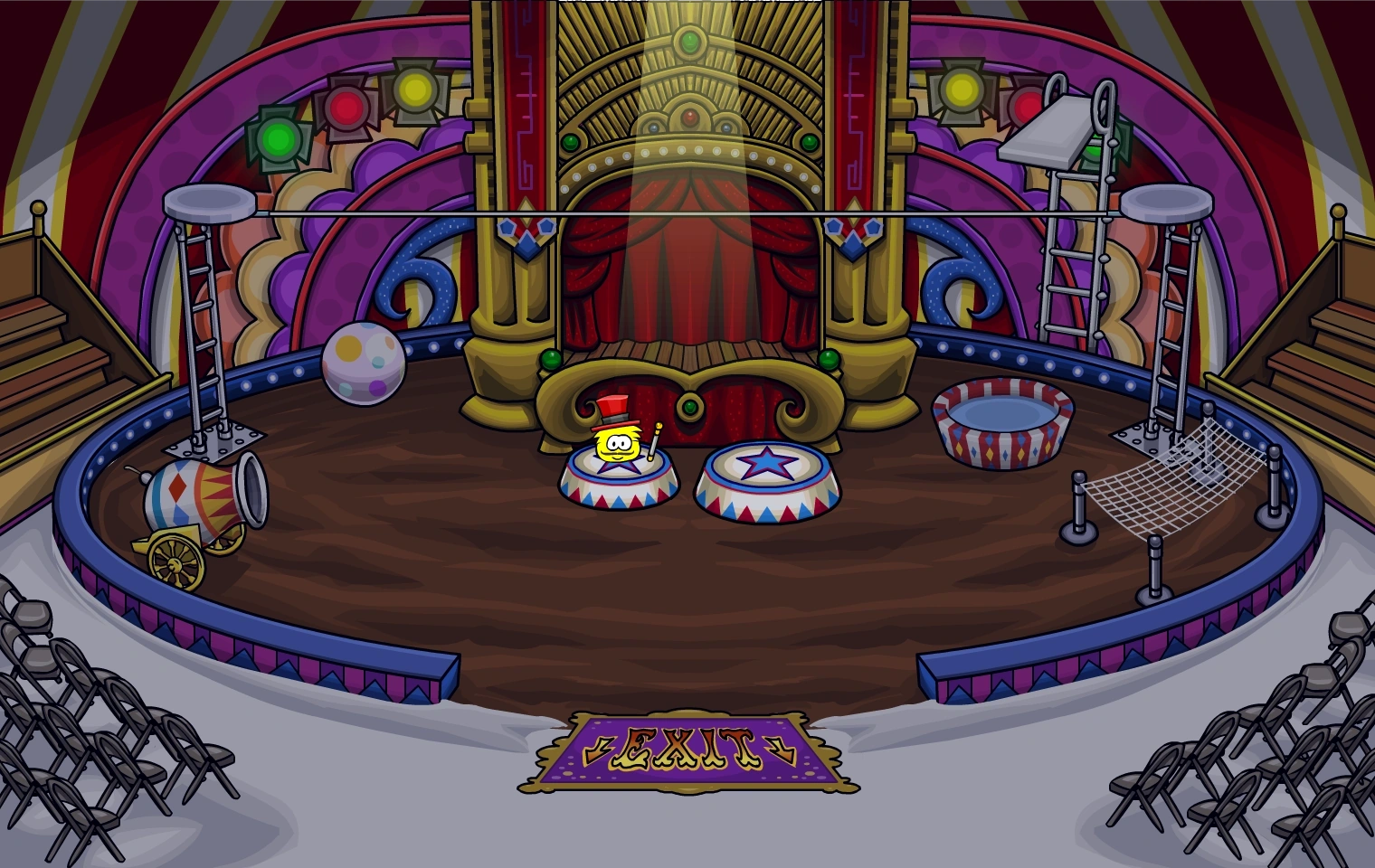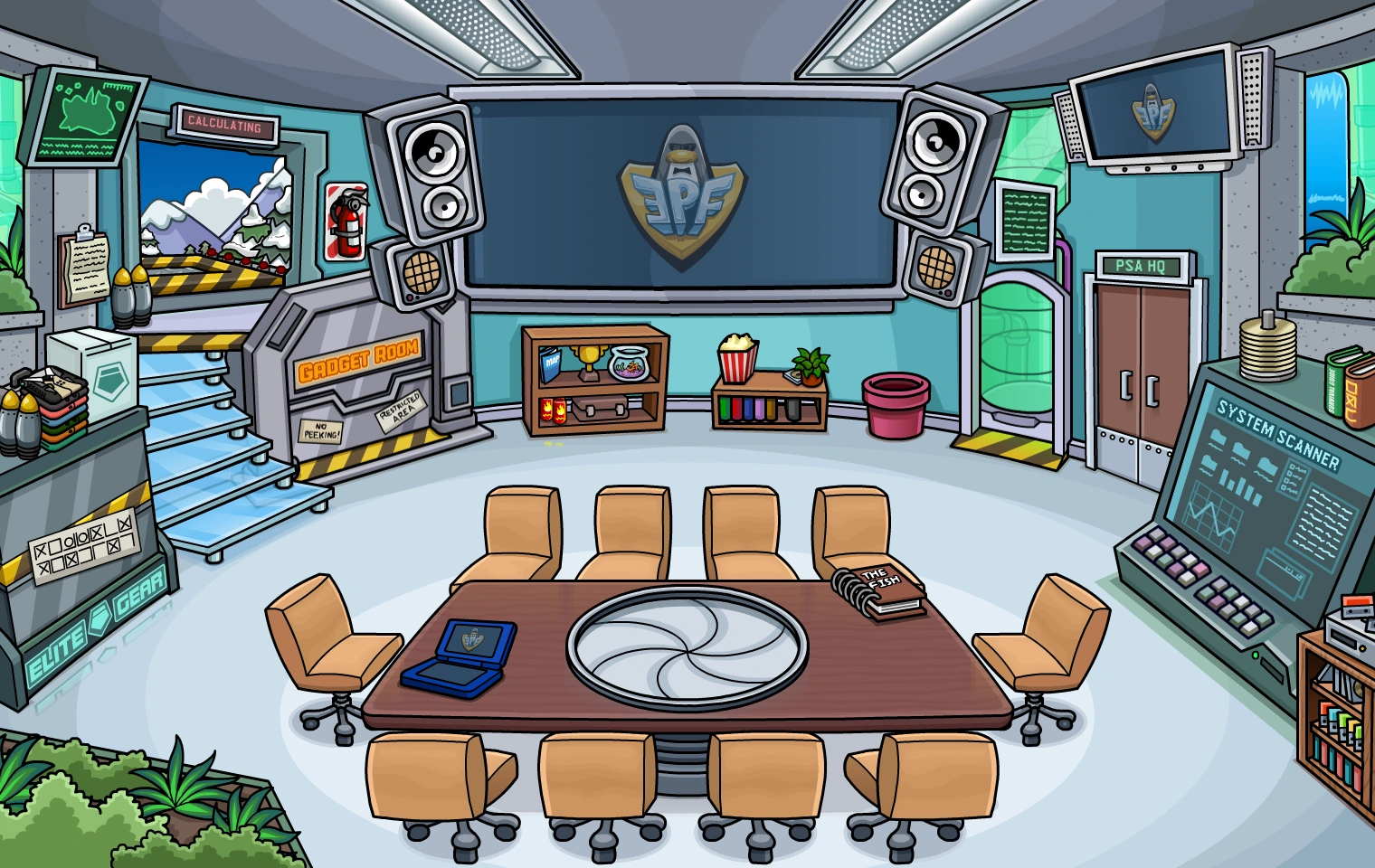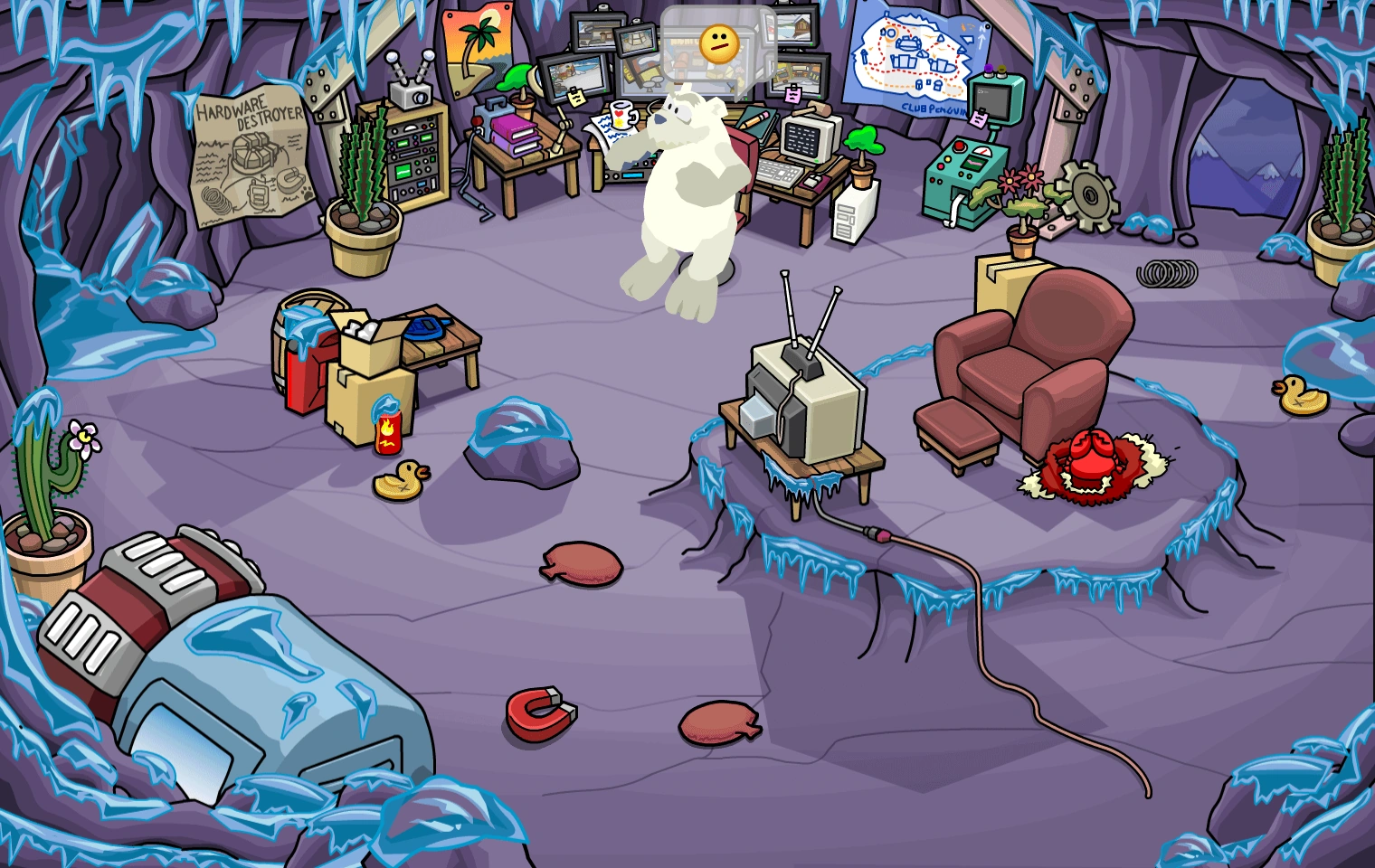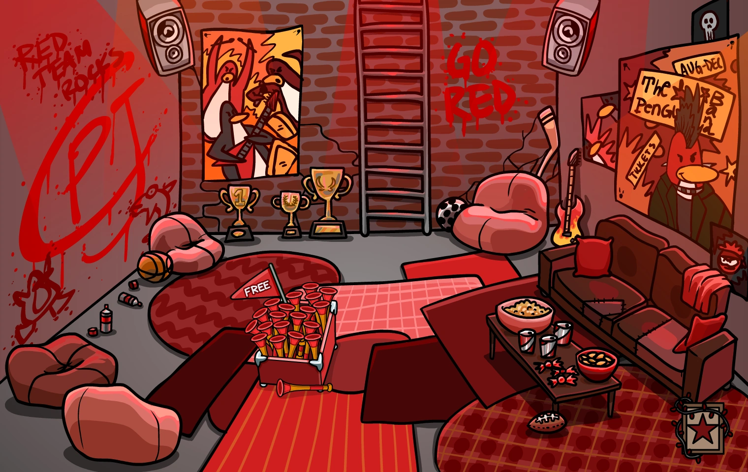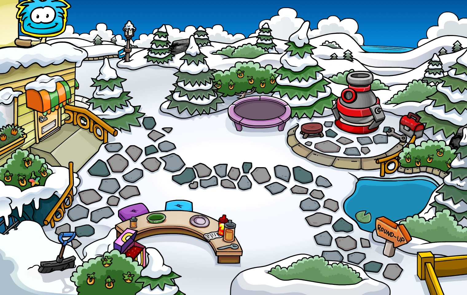 Rooms are the various locations one can visit on Club Penguin Island. They can be accessed through using the Map or by waddling from room to room.