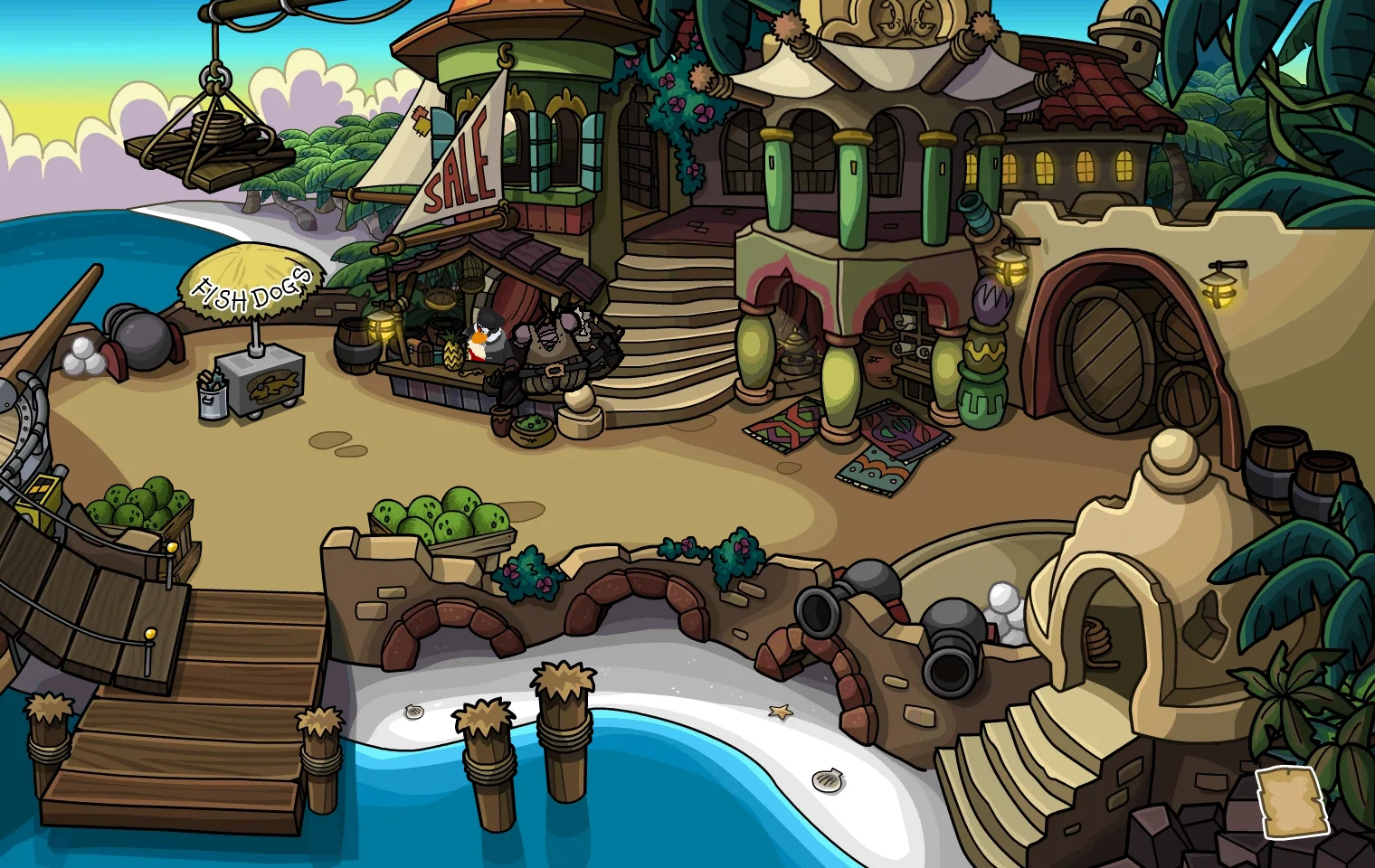 The Swashbuckler Trading Post is a party room accessible from the Migrator on Club Penguin Journey. It was released during the Pirate Party 2024.